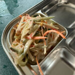 Roughly cut the noodles so it’s easier to mix. Then, in a bowl, combine noodles, cucumber, carrots, and imitation crab. Add mayo and season with salt and pepper. Mix it well using a gloved hand to mix it thoroughly.